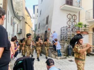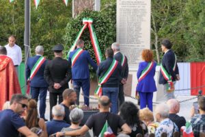 Turania – Nel giorno della festa di San Donato, Petescia ricorda con orgoglio e sentimento patriottico le vittime e i caduti della Grande Guerra. Domenica 3 settembre, i cittadini si sono riuniti per celebrare come da tradizione la festa dei caduti e condividere insieme l’emozione per l’inaugurazione del nuovo monumento. Accompagnati dal passo di marcia e dalla trionfale musica della banda dei Bersaglieri di Palombara Sabina, dopo la santa messa la platea ha assistito all’inaugurazione del nuovo dipinto realizzato presso piazza Umberto I°, realizzato dall’artista Mario Sforza in onore e memoria dei caduti. Alla presenza del Sindaco di Turania Roberto Proietti, il corteo ha proseguito poi presso piazza Sant’Andra per il taglio del nastro e gli omaggi alle vittime di guerra.
