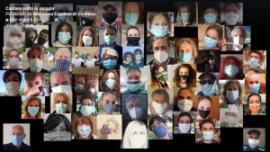 Per chiudere in bellezza, proprio questi giorni la Biblioteca ha realizzato un video, con il contributo di Alessio Costantino (che si può vedere qui: https://www.facebook.com/watch/?v=549393242410678) in cui compaiono tutti gli artisti, volontari, semplici cittadini che hanno contribuito alle iniziative: nella speranza che possa presto riprodursi la vita come la conoscevamo prima, compare qui una squadra volenterosa di “mascherinati”. Compare – è questo il vero punto – una squadra.