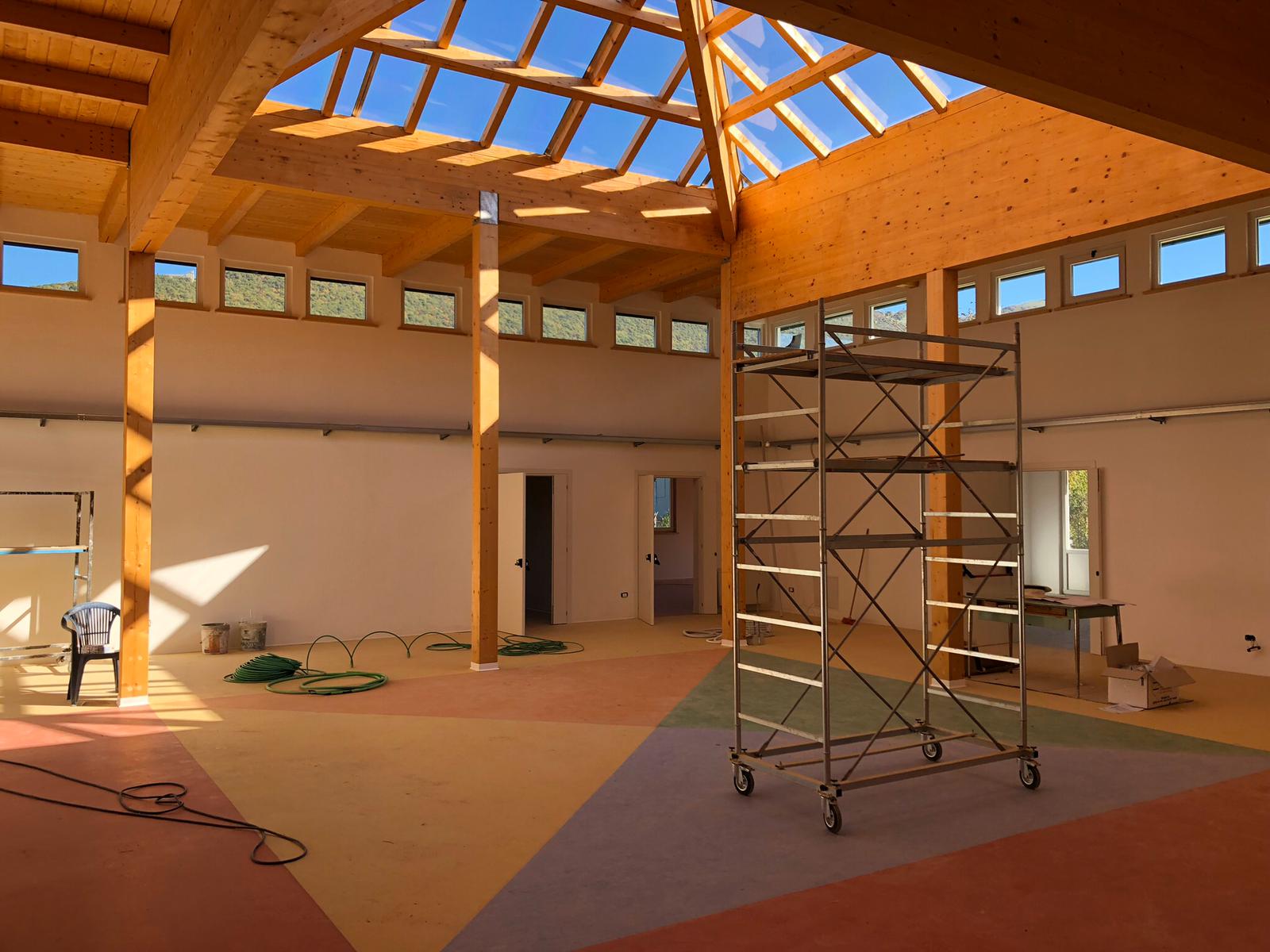 La struttura è stata progettata con caratterizzazioni di accoglienza e modernità con un aspetto architettonico di grande fascino. “Le aule – commenta Diego Coroni – sono spaziose e luminose ed i pavimenti con colori diversi danno alle pareti bianche riflessi del loro colore. In ogni aula ci sono le prese per la rete internet e per l’antenna televisiva. Il tutto sotto la straordinaria presenza del Santuario della Madonna dei bisognosi nelle finestre che illuminano il grande spazio del salone d’ingresso. Una bella sensazione di progresso e modernità al passo con i tempi e proiettata nel futuro anche per una piccola comunità. Un lavoro importante svolto dall’Amministrazione Comunale a favore del bene comune”.