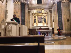 “In questo momento intendo rivolgermi a tutti i sindaci d’Italia, in particolar modo a quelli dei territori maggiormente colpiti dal coronavirus e ormai da settimane in prima linea, insieme al personale ospedaliero, in questa difficile battaglia: a loro dico che, nonostante il dolore, la profonda sofferenza e il sentimento di impotenza davanti alle migliaia di lutti che colpiscono familiari e amici devono assolutamente credere nella speranza, devono tornare a imparare a sperare insieme ai loro concittadini”, ha voluto sottolineare Biondi in una piazza Duomo deserta proprio per la ristrettezza causata dall’emergenza coronavirus. ”Non è un imperativo per la sopravvivenza, ma per un futuro nuovo, dove la speranza diventi fattrice di storia, tensione verso uno scopo, impegno per un nuovo umanesimo”.