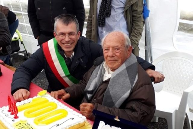 Il centenario con grande commozione ha soffiato le candele sulla torta con le insegne dei 100 anni, ed i sindaci hanno consegnato una targa celebrativa per questo importante traguardo.