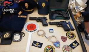 I militari a seguito della successiva perquisizione domiciliare, in Roma, rinvenivano numerosi capi di abbigliamento, sia invernali che estivi, in uso alla Polizia di Stato completi di tutti gli accessori, comprese manette, paletta segnaletica e tre pistole sceniche.