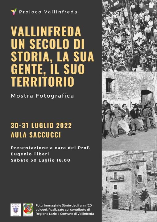 VALLINFREDA – L’appuntamento è per una duegiorni di grande interesse nel bel borgo della Valle Aniene. Sarà allestita una suggestiva Mostra Fotografica d’epoca con presentazione a cura del Prof. Eugenio Tiberi, una selezione di foto d’epoca che raccontano la storia e le persone della nostra comunità nel periodo tra gli anni ’20 e gli anni ’70 circa del secolo scorso.