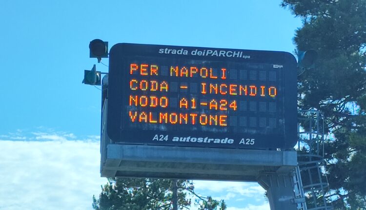 Vasto incendio su A1 intersezione con la a24, code e rallentamenti