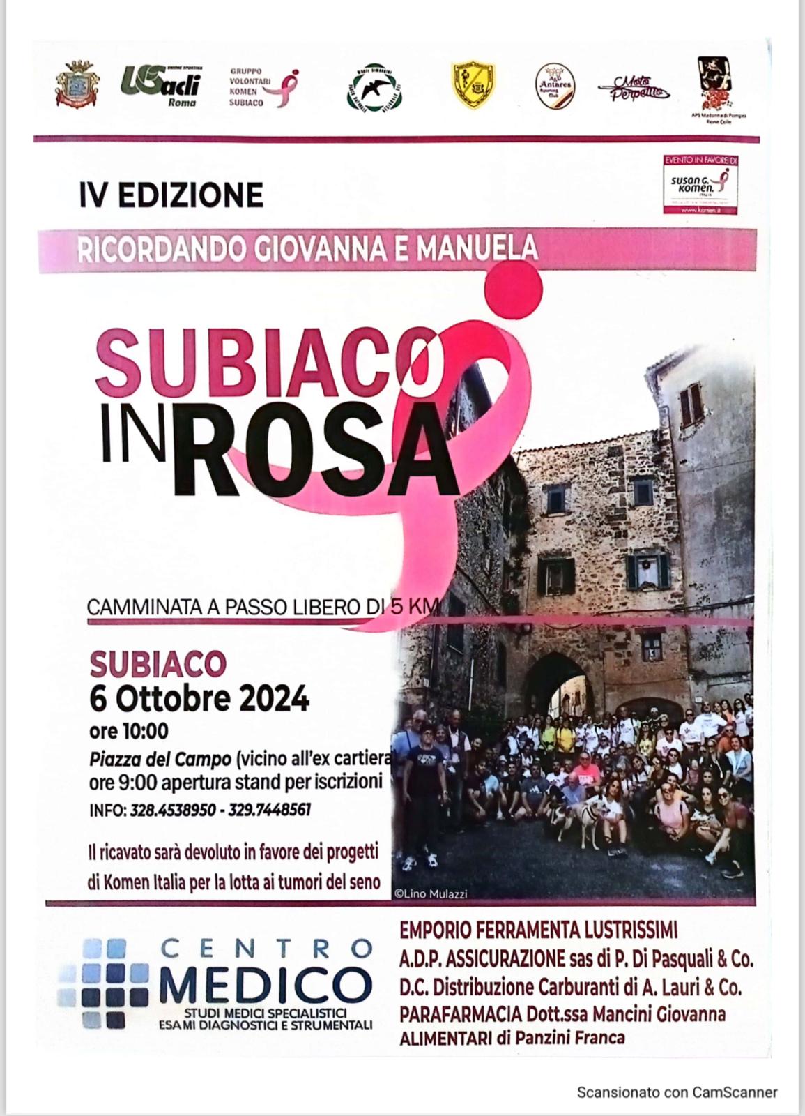Subiaco – L’appuntamento è per domenica 6 ottobre con la camminata  passo libero per un percorso di 5 km nel ricordo di Giovanna ed Emanuela. Di seguito il dettaglio evento: