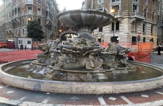 Tra gli edifici più iconici c’è il Palazzo del Ragno, apparentemente ispirato al design assiro-babilonese, che presenta anche gargoyle con teste di animali che guardano minacciosamente i visitatori. Costruito da Gino Coppedè nel 1920, il palazzo ha una torretta e quattro piani (al terzo c’è un dipinto con un cavallo sormontato da un’incudine tra due grifoni e una scritta in latino “labor”).