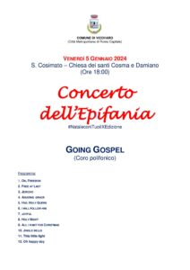 Concerto dell’Epifania a cura del coro polifonico “Going Gospel”, venerdì 5 gennaio 2024 alle ore 18.00 presso la chiesa dei SS Cosma e Damiano a San Cosimato.