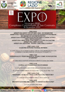 Vicovaro – Sta tornando l’EXPO, giunto alla IV edizione. Giovedì 8 dicembre 2022 l’evento più magico dell’anno che questa volta si terrà presso il Complesso Conventuale di San Cosimato.