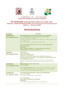Vicovaro – Sta per prendere il via la dodicesima edizione del “Marcantonio Sabellico”, una serie di eventi che avranno inizio da domenica 3 giugno 2018 per concludersi Domenica 1 luglio. Quattro giornate articolate e tutte da vivere con visite guidate, concerti ed approfondimenti tematici dedicati per l’appunto a Marcantonio Sabellico storico umanista vicovarese vissuto a cavallo tra il 1400 ed il 1500. Le quattro giornate sono state organizzate dal Comune di Vicovaro. Cliccando sulla immagine di seguito è possibile visualizzare la locandina ingrandita con la descrizione nei dettagli degli eventi.