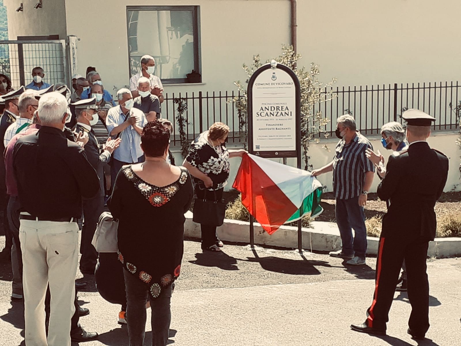 Ma il “tuffo” è stato, ovviamente preceduto da una cerimonia sobria ed anche intrisa di significato con lo svelamento della insegna che dedica al compianto brigadiere Andrea Scanzani. Si  tratta indubbiamente di un importante traguardo raggiunto dall’amministrazione  comunale.