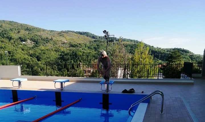 Vicovaro, tuffo di collaudo del sindaco nella nuova piscina comunale