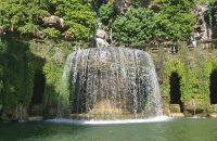 Fontana dell’Ovato: un grande bacino a forma ovale, è idealmente il regno della natura, il punto in cui si celebra la straordinaria ricchezza della campagna laziale. La fontana, infatti, rappresenta i Monti Tiburtini dai quali ha origine l’Aniene, il principale affluente del Tevere nonchè la principale fonte dell’acqua di tutto il giardino. Al centro, proprio sopra la cascata, è visibile una figura di donna, la Sibilla Tiburtina che veniva venerata come una divinità in un tempio, posto proprio nei pressi dell’Aniene.