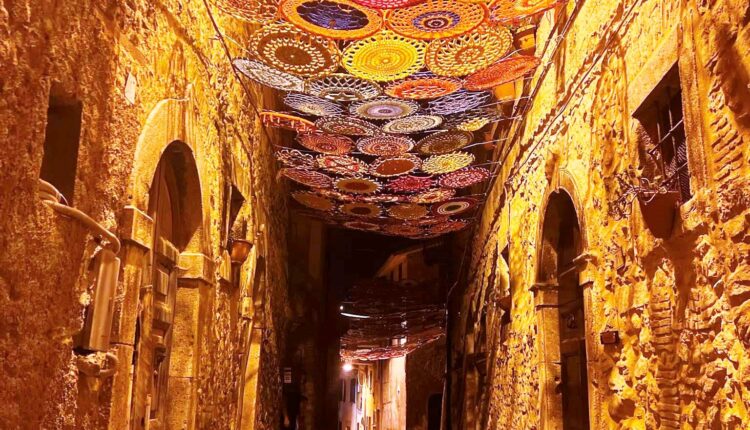 Centinaia di grandi centrini hanno creato un tetto colorato per i vicoli del borgo, vere opere d’arte che hanno trasformato Villaromana in un museo a cielo aperto.