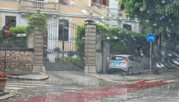 Diverse le scene immortalate dai passati che hanno ritratto  automobilisti che sono saliti sui marciapiedi per “proteggersi” dalla pioggia battente che è durata poco più di un quarto d’ora.