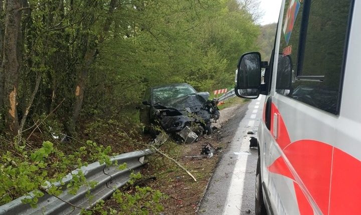 Violento incidente nella Valle di Luppa, auto distrutta dal testacoda contro il guard rail. Immediati i soccorsi