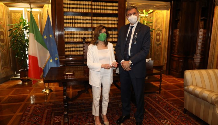 Roma – “Ho voluto ricambiare la visita che la Presidente del Senato Casellati ha fatto la scorsa settimana al centro vaccinale di Pescara, per ringraziarla nuovamente per le parole spese a sostegno del lavoro della Regione, degli operatori della sanità abruzzese e di tutti i volontari che, nella dura lotta contro la pandemia, hanno saputo contribuire a creare un sistema sanitario virtuoso esempio per tutto il resto del Paese.” Lo ha detto il Presidente della Regione Abruzzo Marco Marsilio al termine della visita di cortesia alla Presidente del Senato Maria Elisabetta Alberti Casellati, svolta questo pomeriggio a Roma, presso Palazzo Giustiniani, sede della Presidenza del Senato. Nel corso dell’incontro, Marsilio ha fatto omaggio alla Presidente Casellati di un bracciale impreziosito con dei ciondoli in argento raffiguranti elementi iconici delle quattro province abruzzesi.
