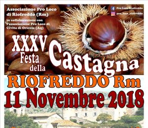 Riofreddo – C’è grande attesa a Riofreddo per la XXXV edizione della tradizionale Festa della Castagna. L’Appuntamento è per domenica 11 novembre. Un evento organizzato dalla Pro-Loco di Riofreddo in collaborazione con la Pro-Loco di Civita di Oricola. E dunque l’appello è la partecipazione per dare a Riofreddo, bellissimo borgo al confine tra Lazio e Abruzzo il giusto tributo per alleviare la sofferenza che grava sulla comunità per la chiusura della strada provinciale di accesso nei pressi della Tiburtina Valeria.  E dunque val bene l’occasione di qualche chilometro in più potendo godere ed apprezzare delle bellezze dei borghi di Vivaro Romano e poi per Vallinfreda arrivando quindi a Riofreddo. Domenica 11  tutti in piazza dunque!