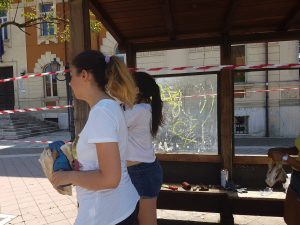 Volontari del campo internazionale in azione a Carsoli, bonifica e pulizia delle pensiline pubbliche