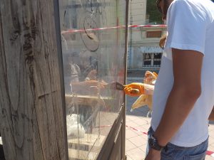 Carsoli – I volontari del campo internazionale sono arrivati sabato e già da oggi sono in piena attività. Già da questa mattina, attrezzi alla mano e con l’ausilio del coordinamento dell’Associazione Il Mondo in una stanza organizzatore dell’iniziativa, hanno iniziato a bonificare la centralissima pensilina situata in via Roma di fronte alle Scuole Elementari Carlo Scarcella. Un luogo di riparo, realizzato a suo tempo in legno e plexigas, che però è stato deturpato da scritte, incuria ed atti vandalici. Così il gruppo di ragazzi provenienti da diverse nazioni si è messo al lavoro restituendo decoro urbano alla città e rendendo giustizia ad uno strumento di pubblica utilità. Bravi.