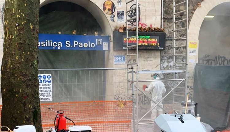 Roma – Molti hanno creduto fossero dipendenti comunali in azione e tralaltro in giorno festivo. In realtà in questa foto a corredo della Metro San Paolo a Roma è un volontario di Retake Roma che sta ridipingendo il tradizionale palo nidicatore  con la M. Ma oltre a questo i volontari hanno bonificato molte aree e ripulito da insudiciamenti mura perimetrali delle entrate della Metro. Che dire bravi.
