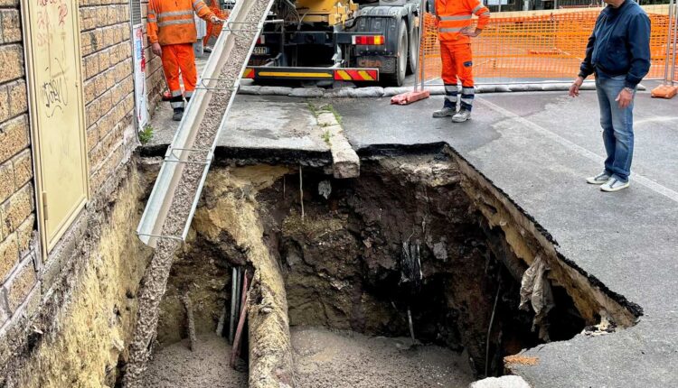Voragine al Portuense, 90 metri cubi di cemento per la messa in sicurezza