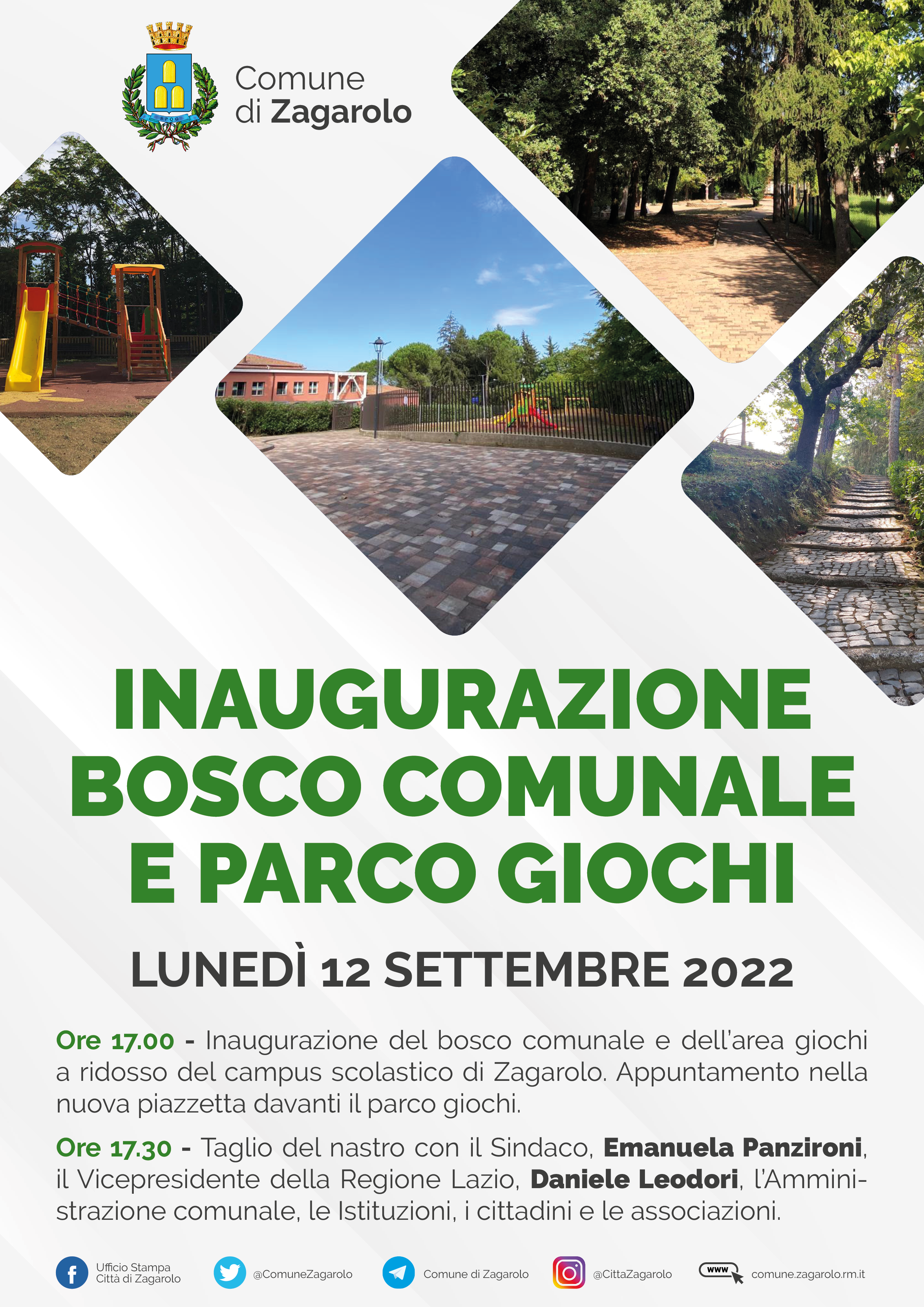 “Un’inaugurazione importante e sentita come poche altre – spiega il Sindaco di Zagarolo, Emanuela Panzironi. – Il bosco comunale è il ricordo più bello della comunità di Zagarolo, tutti siamo passati per quel luogo e in quel verde durante le nostre esperienze scolastiche. È un’emozione tornare ad abbracciarlo in una nuova veste, con una nuova razionalizzazione di spazi e un nuovo parco giochi. Con l’apertura dell’anno scolastico, tagliamo il nastro con cittadini e Istituzioni di un’area che potrà essere vissuta dagli studenti e dalle famiglie in tutti i giorni dell’anno. Do appuntamento a tutti i cittadini e associazioni a Lunedì prossimo per svelare insieme il nuovo volto di uno dei luoghi simbolo di Zagarolo”.