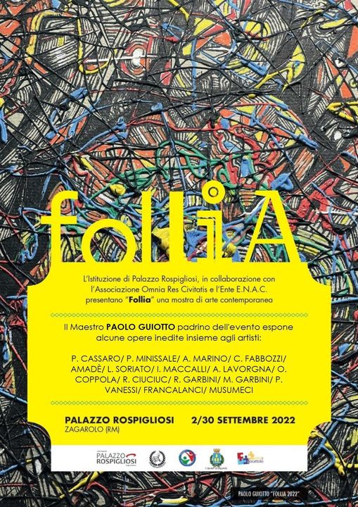 Zagarolo – L’Istituzione di Palazzo Rospigliosi, a Zagarolo, in collaborazione con l’Associazione Omnia Re Civitatis e l’Ente E.N.A.C., presenta “Follia”m, una mostra di arte contemporanea a cura del Maestro Paolo Guiotto.