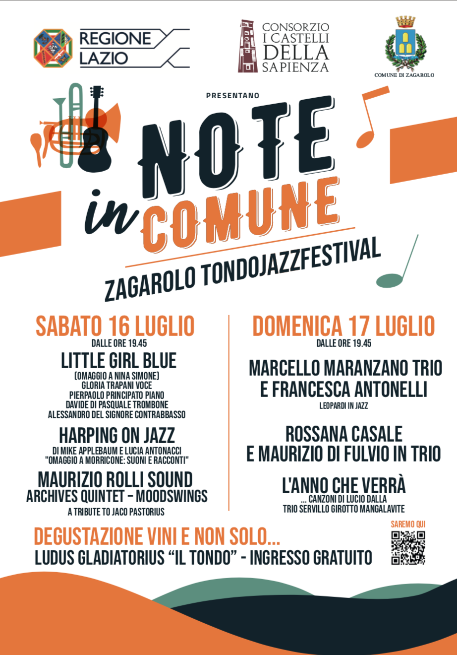 “Il Tondo” è un luogo magico non solo di Zagarolo, ma dell’intero territorio metropolitano – aggiunge il Consigliere delegato alle Politiche culturali, Alessandro D’Ambrosi. – Portare musica jazz e musicisti di livello in questo scenario straordinario è un onore per la nostra Città. Quest’estate verrà ricordata per eventi culturali, turistici, sportivi, enogastronomici, per inaugurazioni, senza dimenticare proprio quelle eccellenze che raccontano Zagarolo. Anche durante questi due eventi sarà possibile degustare i vini del territorio, in un connubio emozionante tra suoni jazz e sapori nostrani”.